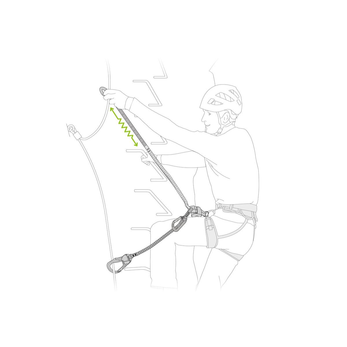 Izjemen samovarovalni komplet za ferate z dvema elastičnima krakom in dvema EASHOOK vponkama z izredno širokim odpiranjem.